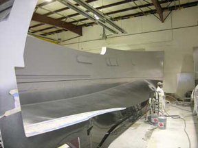 The process uses composite materials and advanced infusion lamination construction. This process reduces weight and increases strength resulting in better efficiency. Infusion lamination is a technique that uses vacuum pressure to draw resin into a laminate. Materials are laid into a mold and a vacuum is applied before resin is introduced. Once a complete vacuum is achieved, resin is literally sucked into the laminate via carefully placed tubing. The part then cures under the higher pressure resulting in much greater fiber-to-resin ratio. A controlled amount of resin is used resulting in more strength and less weight. Typical hand lay-up construction suffers from excess resin being used and does not have the infusion pressure to help bond the laminate. Excess resin will actually weaken the part. Vinyl ester resin, which is stronger than other resins, is used for all molded parts to eliminate the potential for blisters. Fathom is one of the few builders utilizing infusion lamination to build its hulls and other components.